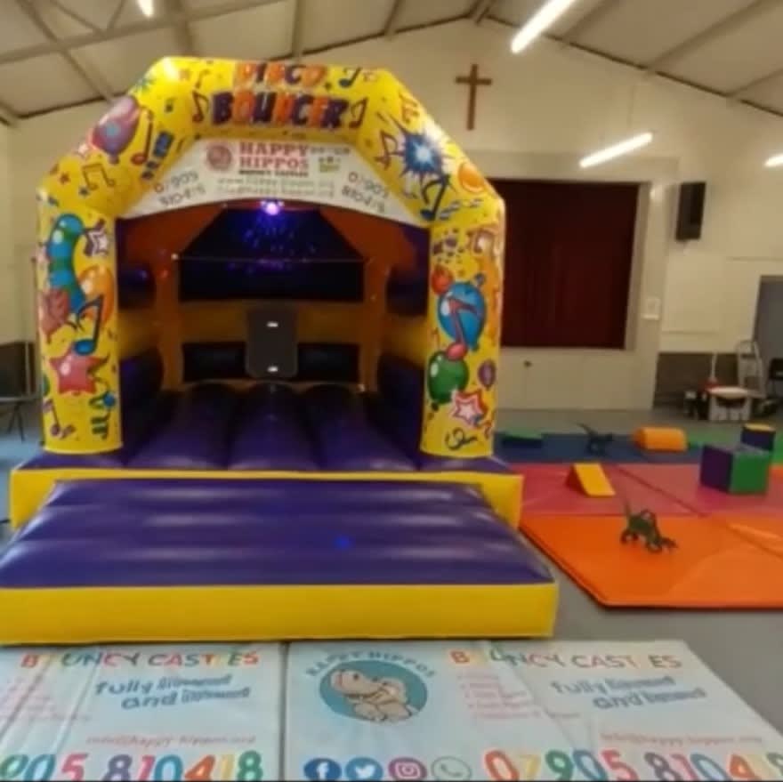The Balloon Disco Bouncy Castle comes complete with LED lights & a Bluetooth speaker built in. There is over 300 songs pre-loaded into the speaker consisting of the latest dance, disco, pop & old school garage anthems! We have never had anyone complain about the music selection, but just incase. the speaker is state of the art bluetooth, so you also have the option to play your own playlist from another device!