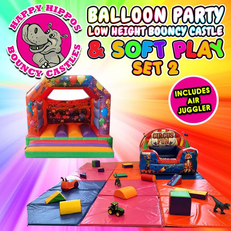 Our fantastic Soft Play Set 2 consists of x6 (10ftx5ft) multi coloured matts, x16 toys & shapes & a 7ft x 6fy Circus themed Air Juggler with balls.The 6 matts are 10ft x 5ft & can be arranged to fit various spaces & have a maximum area of 300 square feet!