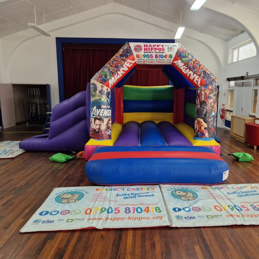 Our amazing Marvel Slide themed bouncy castle is lovely with bright & vibrant colours. The Marvel Slide Bouncy Castle has proven to be one of our most popular castles over the past few years. This castle can also come with soft play & a matching themed ball pit.