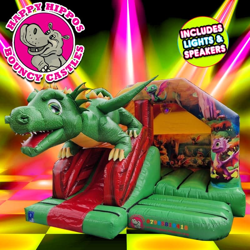 Elevate playtime to new heights with the 3D Disco Dragon Front Slide Combi. Watch as children embark on magical journeys, sliding alongside a friendly dragon in an inflatable masterpiece that combines fun and fantasy.