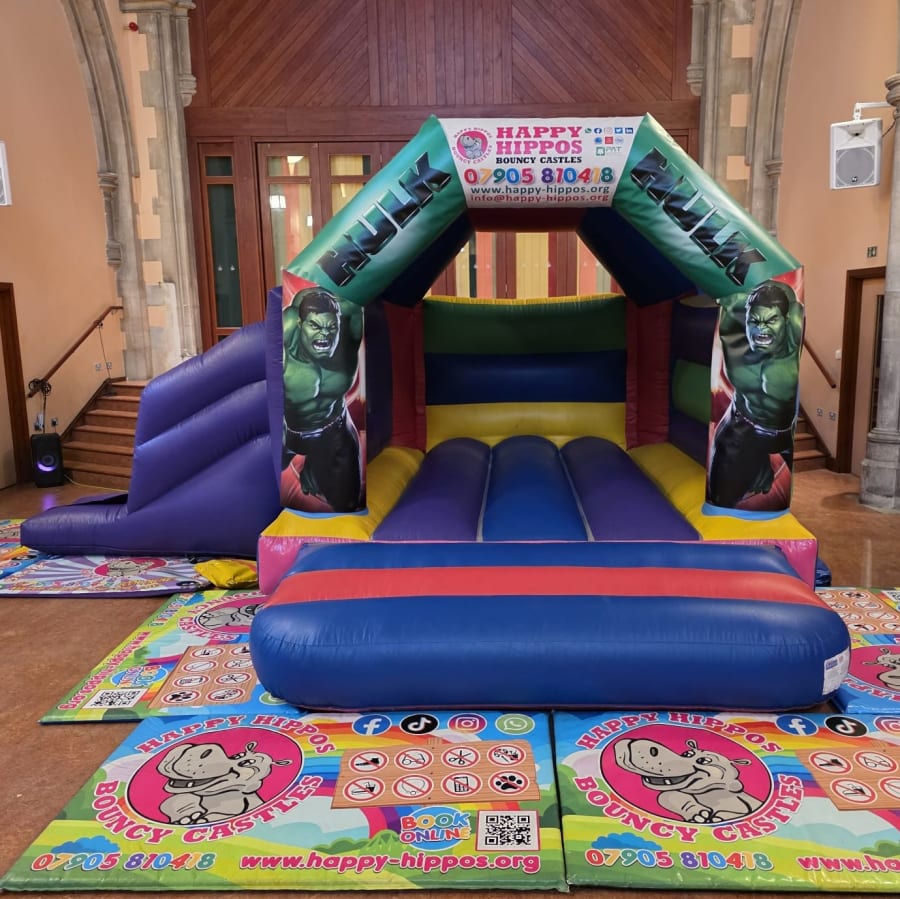 Our fantastic Hulk Slide themed bouncy castle is lovely with bright & vibrant colours. The Hulk Slide Bouncy Castle has proven to be very popular over the years. This castle can also come with soft play & a matching themed ball pit.