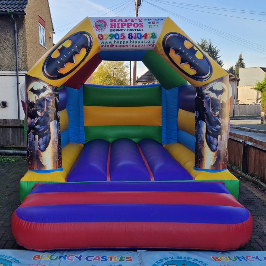 Our stunning Batman themed bouncy castle is lovely with bright, vibrant colours. The Batman Bouncy Castle is brand new for 2023 & has proven to be very popular this year. This castle can also come with soft play & a matching themed ball pit. This theme is also available with a slide so please take a look - BATMAN Slide 15ft x 18ft