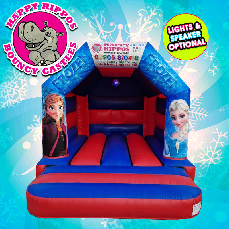 Our amazing Frozen themed bouncy castle is lovely with bright & vibrant colours. The Frozen Bouncy Castle has proven to be very popular over the years. This castle has an option to make it disco ready with lights & speaker for an extra £25. This castle can also come with soft play & a matching themed ball pit.