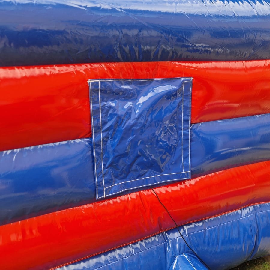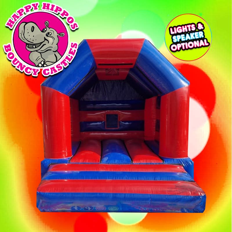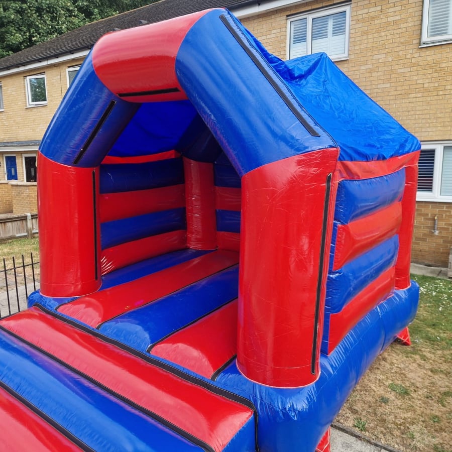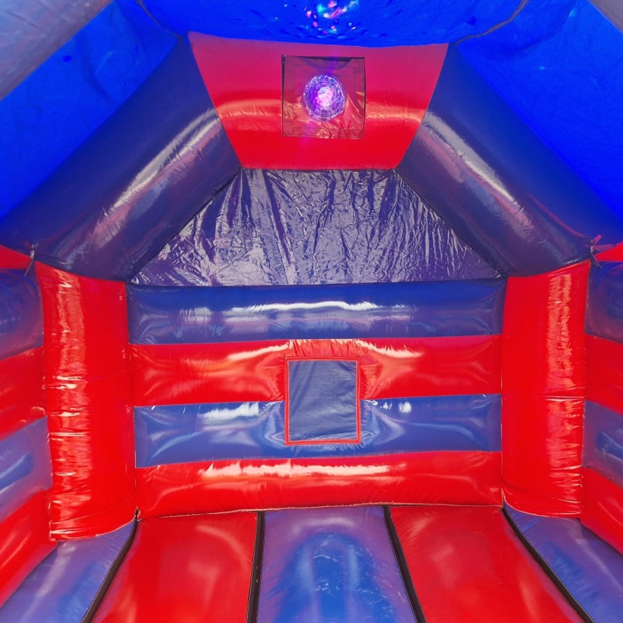 Our amazing 14ft x 12ft Bloe & Red Glossy bouncy castle is made with bright & vibrant colours with a stunning glossy finish. This castle is new for 2025!. This castle has an option to make it disco ready with lights & speaker for an extra £25.