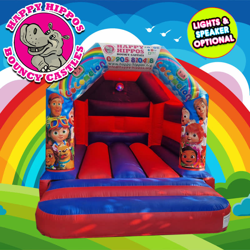Our exciting Cocomelon themed bouncy castle is lovely with bright, vibrant colours. The Cocomelon Bouncy Castle has proven to be very popular this year. This castle can also come with soft play & a matching themed ball pit.