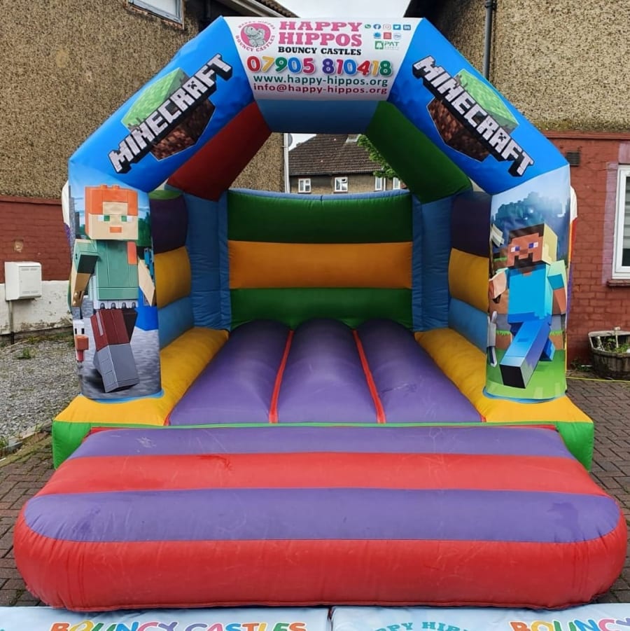 Our amazing Minecraft themed bouncy castle is lovely with bright & vibrant colours. The Minecraft Bouncy Castle has proven to be one of our most popular castles over the past few years. This castle can also come with soft play & a matching themed ball pit.