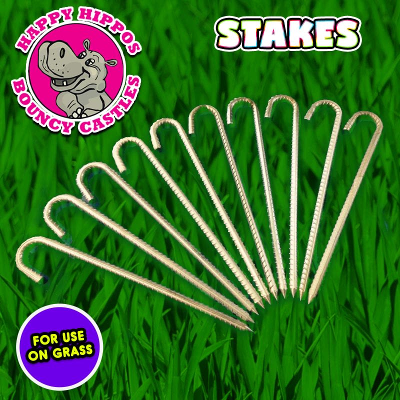 The stakes will be installed on delivery & removed upon collection. If you have any further questions please feel free to Contact Happy Hippos Bouncy Castles