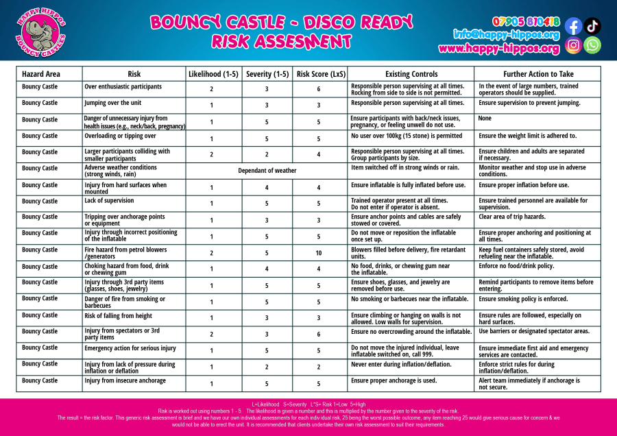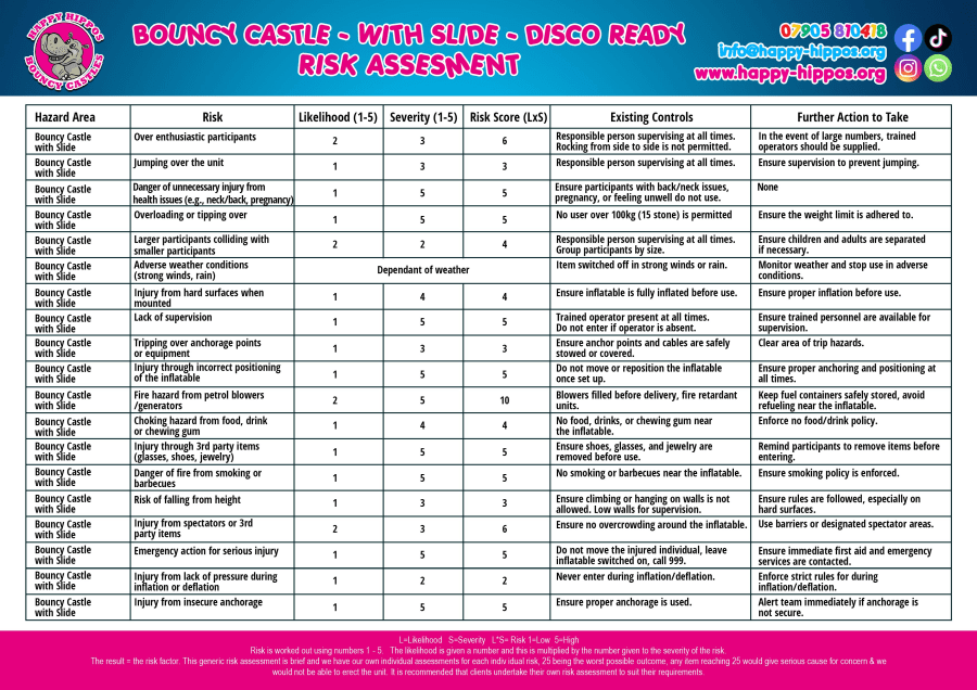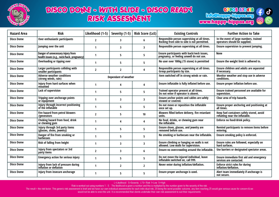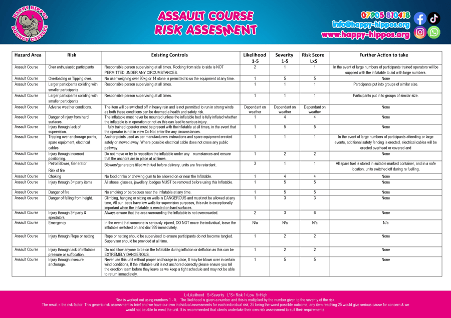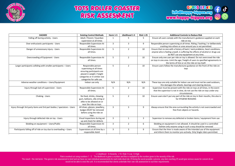 All of our up to date Risk Assesments for every product we hire can be viewed below. These can be sent over prior to any booking