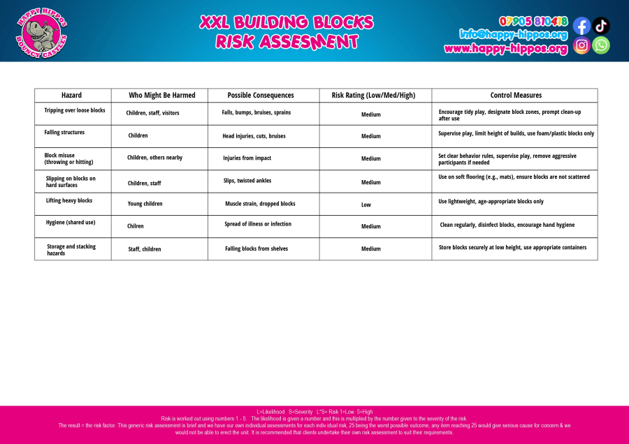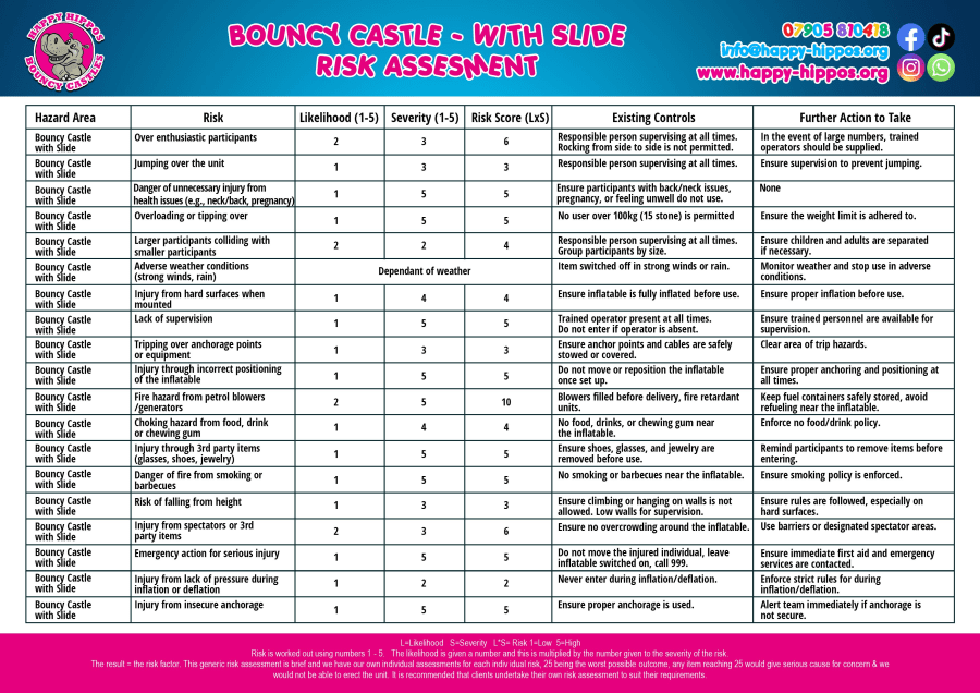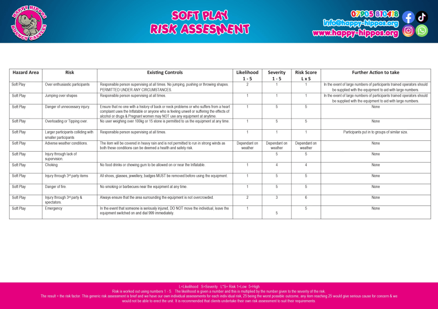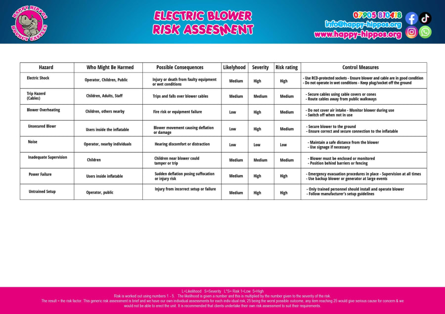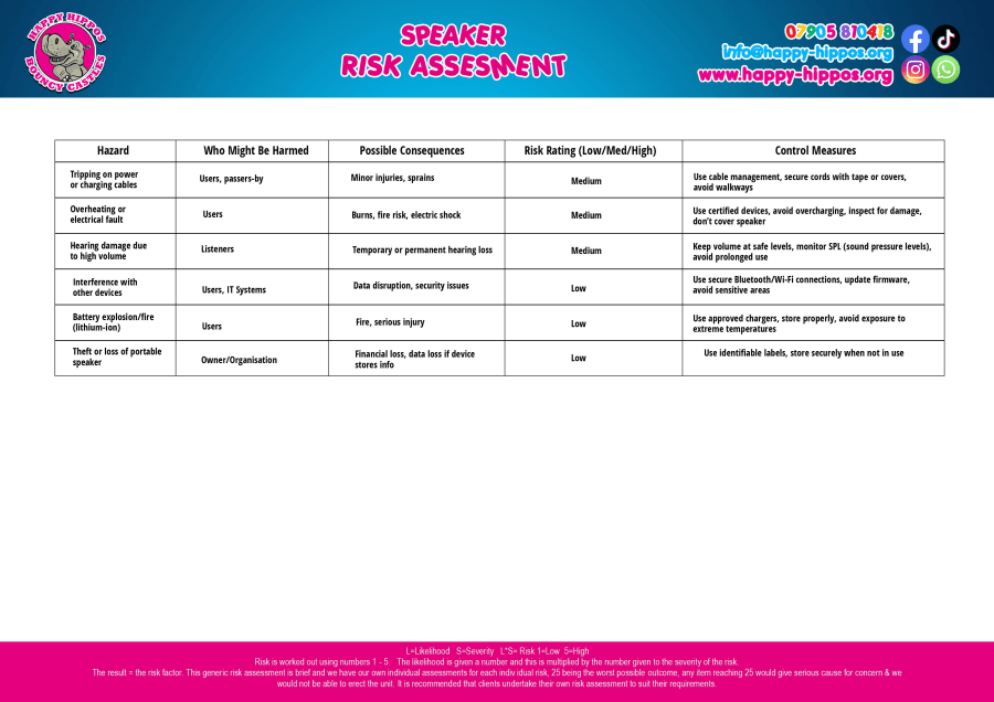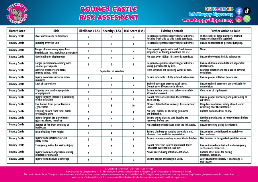 All of our up to date Risk Assesments for every product we hire can be viewed below. These can be sent over prior to any booking