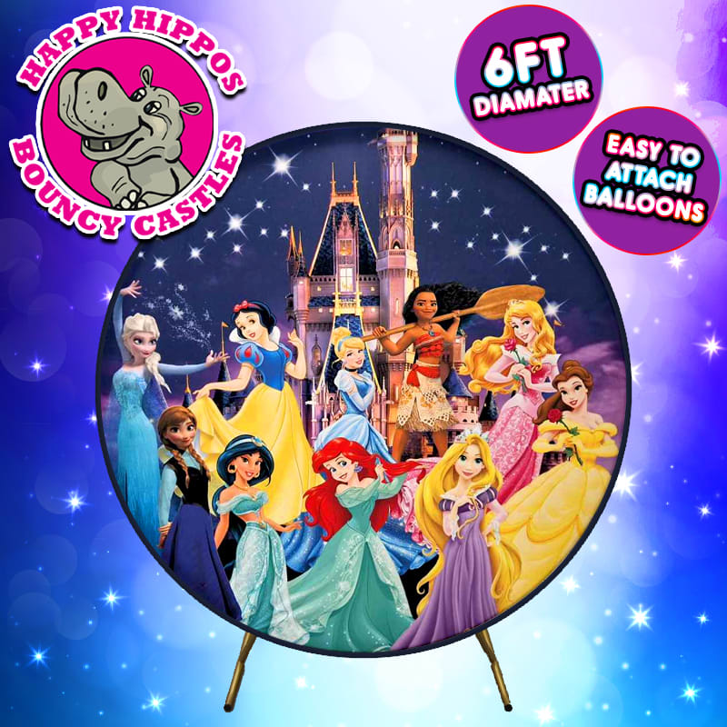 Transform your event with our stunning 6ft Round Disney Princess Backdrop, a perfect addition to any Disney Princess themed party. This eye-catching backdrop creates a vibrant focal point that is sure to impress guests of all ages.