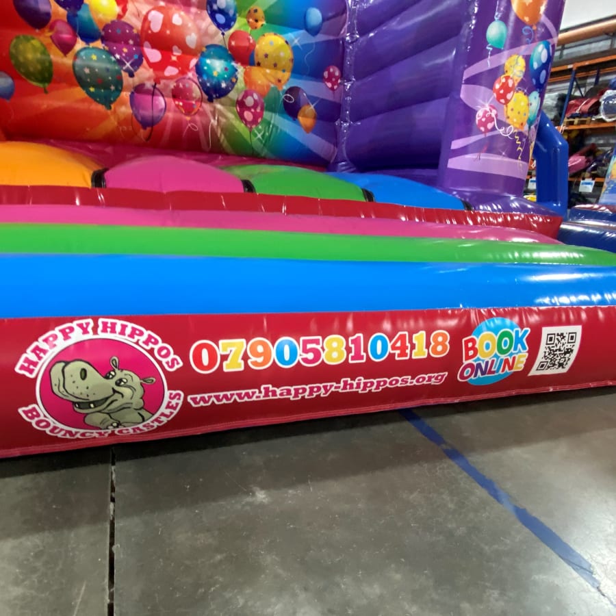 What truly sets this bouncy castle apart is its enchanting Party-themed artwork. Featuring an array of colourful balloons and streamers, it radiates joy and excitement from every angle. This versatility allows you to tailor the bouncy castle to match the theme of your event perfectly.